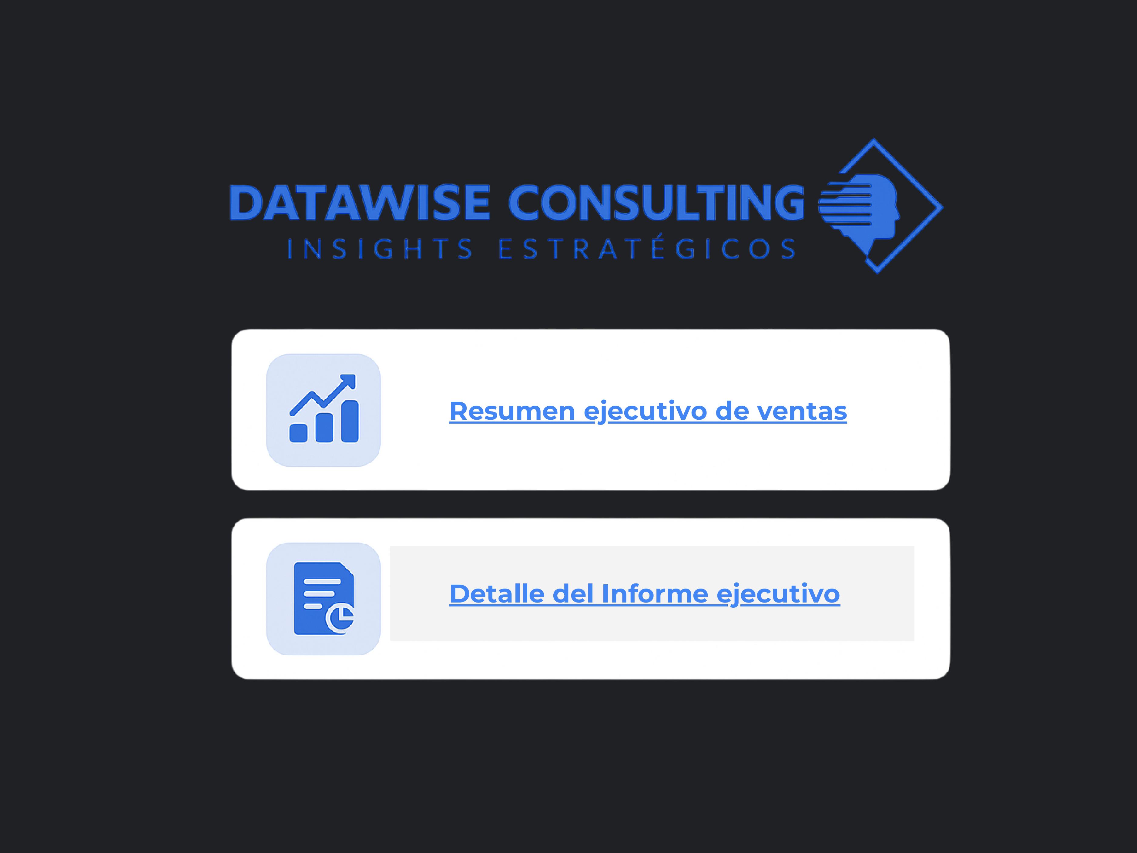 Menú principal con acceso al resumen ejecutivo y detalle del informe